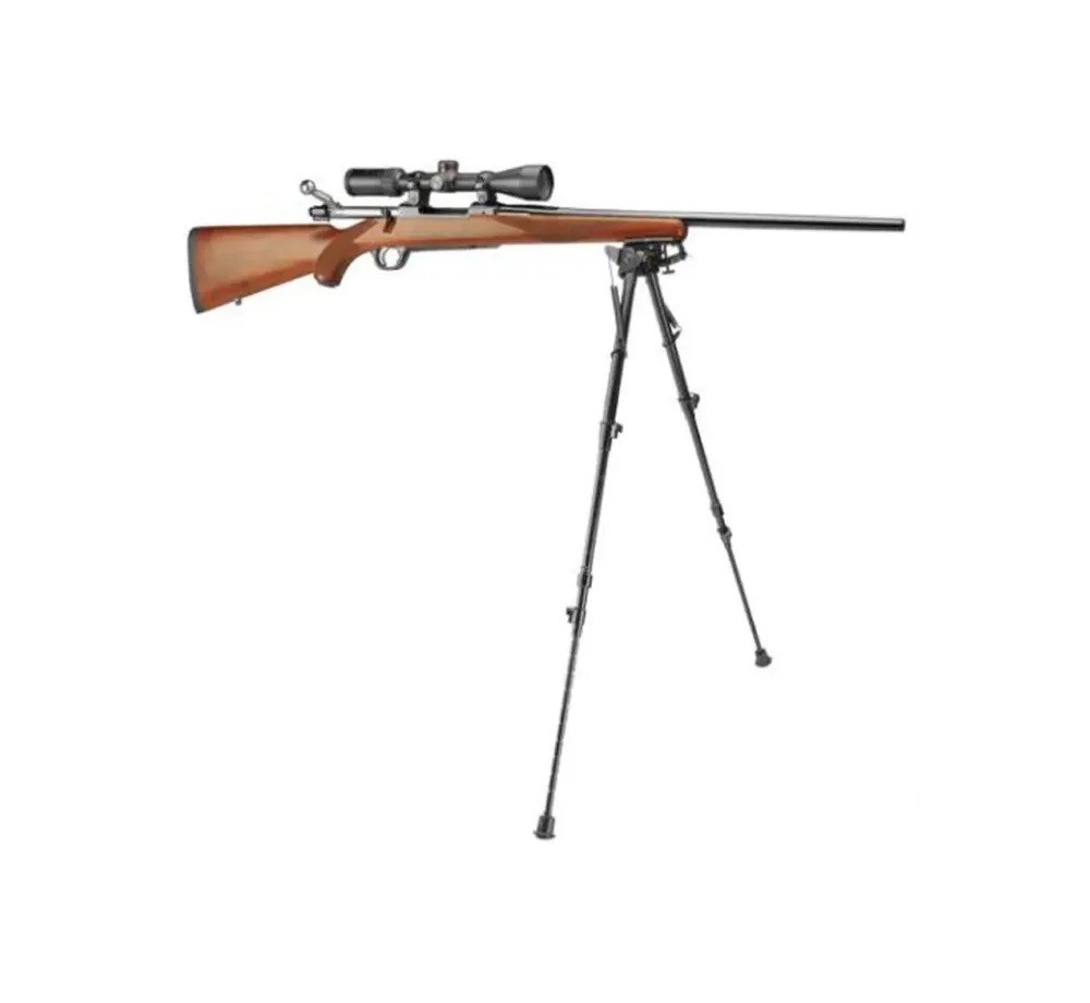 Моделът се закрепва към почти всяко оръжие със sling swivel stud и стои стабилно по време на стрелба. Конструкцията е от лек алуминий, което добавя минимално тегло към оръжието, без да жертва практичността. Краката се разгъват бързо с натискане на бутон, имат notched секции за лесно и повторяемо фиксиране на височината, а меките гумени крачета помагат за по-добро сцепление и по-уверена позиция върху различни повърхности.