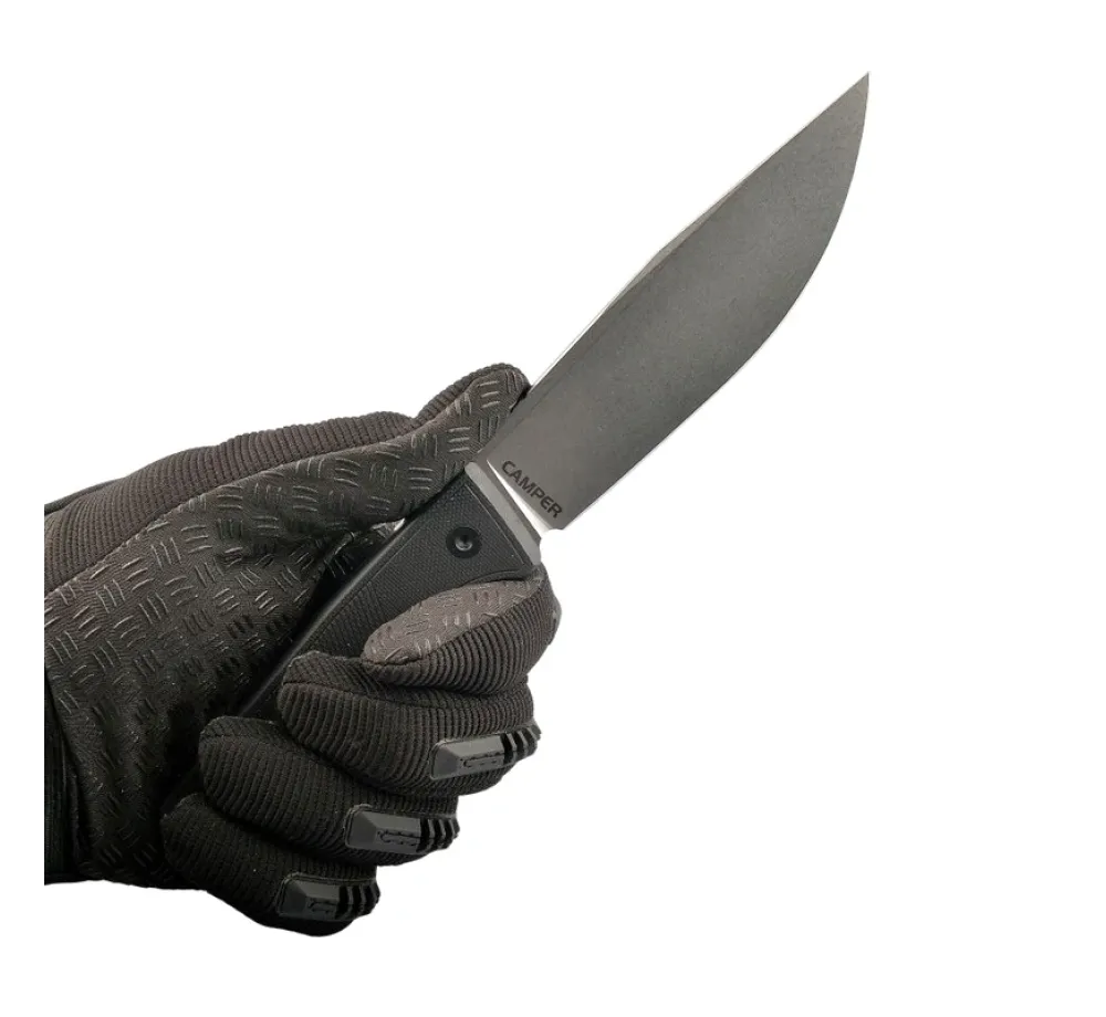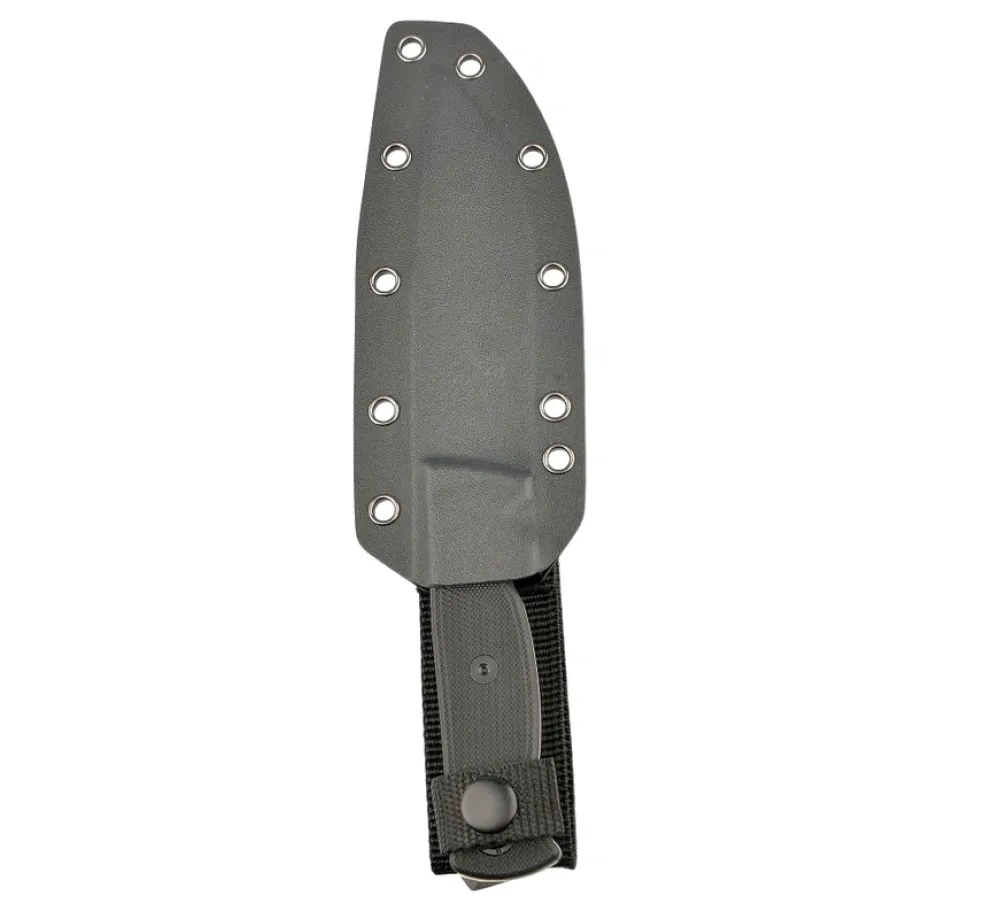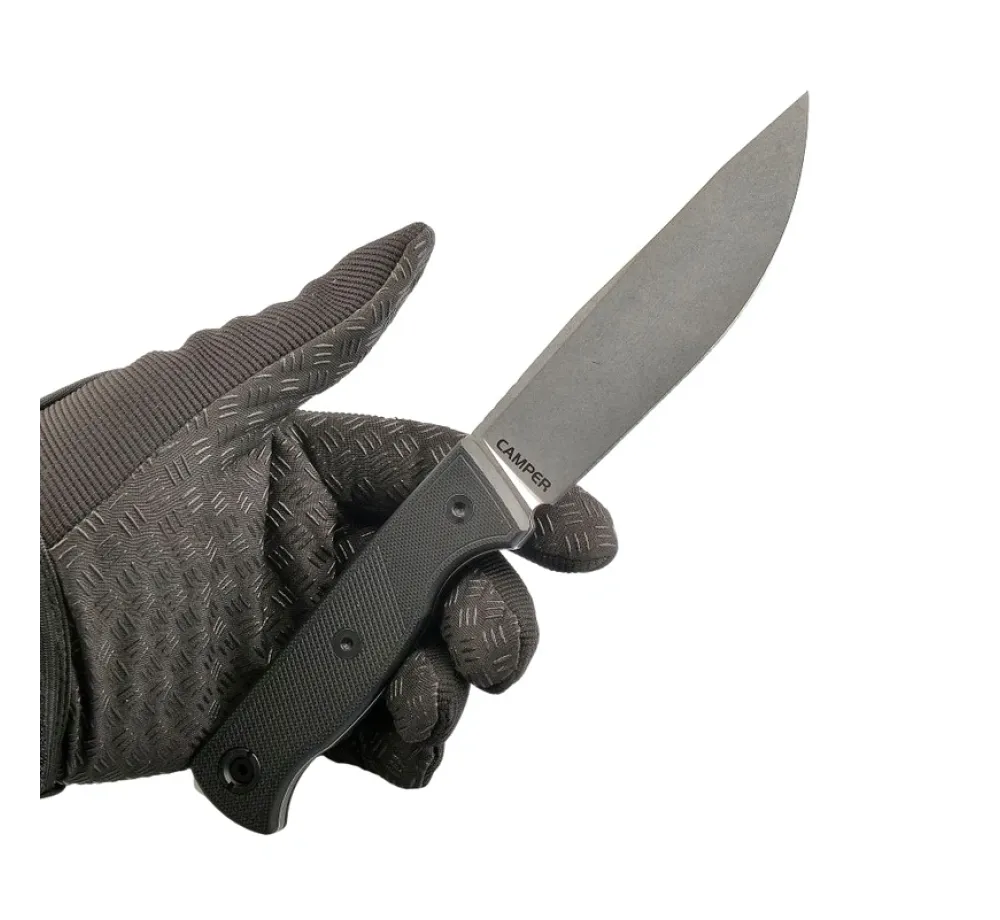 Дръжката от G10 дава твърдо и стабилно усещане, а набраздяването помага за сигурен захват дори при мокри ръце, ръкавици или студ. Формата е ориентирана към контрол при “работни” движения – рязане на въже, подготовка на храна, леки дейности по дърво и общи лагерни задачи.