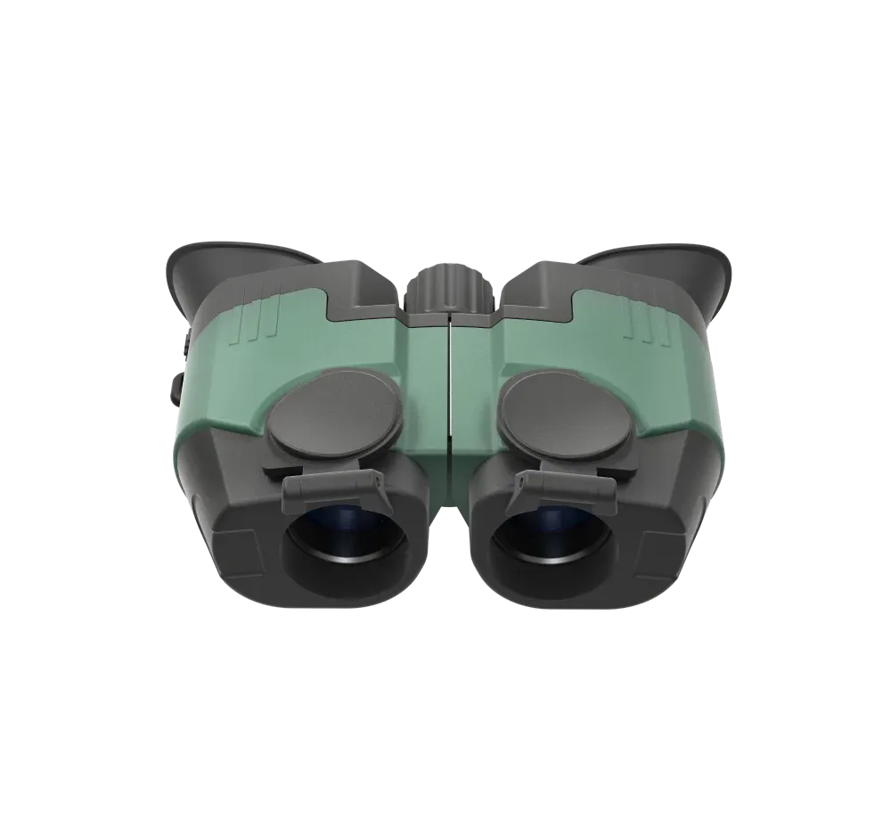 Practical details make it stand out: fixed flip-up lens caps stay attached and open upward, so you don’t lose them. The soft touch coating improves grip, while the skewed eyeshade helps reduce side glare and distraction. One-hand operation is easy: focus with the center wheel and fine-tune with the diopter adjustment levers.