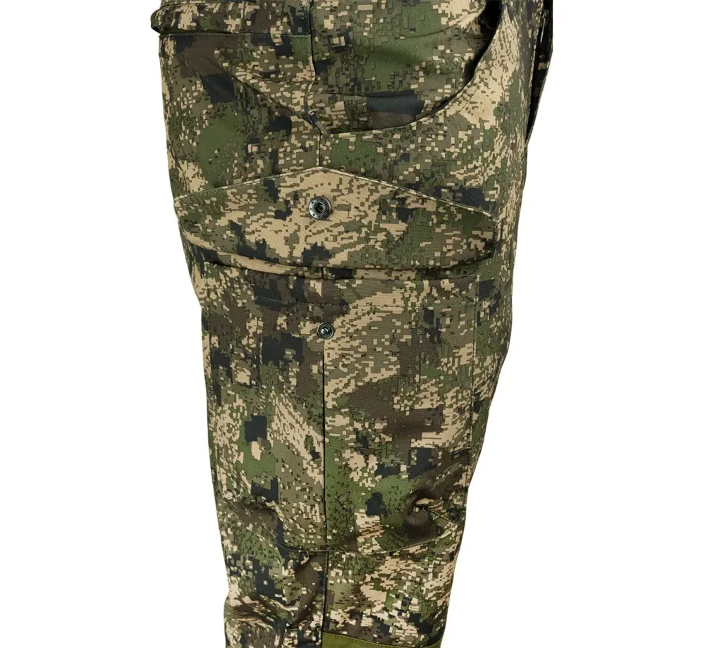 Камуфлажът Digicam е създаден така, че да работи на различни дистанции. Отблизо се виждат по-дребни и по-детайлни форми, а от по-далеч тези елементи се сливат в по-голям визуален рисунък. Това помага панталонът да се вписва добре в разнообразна среда и го прави много подходящ за ловци, които търсят модерна камуфлажна визия с реална практическа стойност.