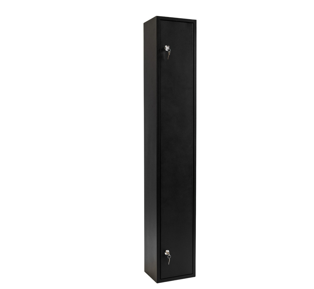 Моделът е със секретни ключалки, които отговарят на законовите изисквания, и с по-различно вътрешно разпределение спрямо по-ниската версия. Височината от 150 см дава още малко резерв при съхранение на дълго оръжие, а горната зона позволява по-подредено отделяне на пистолет, боеприпаси и дребни принадлежности.