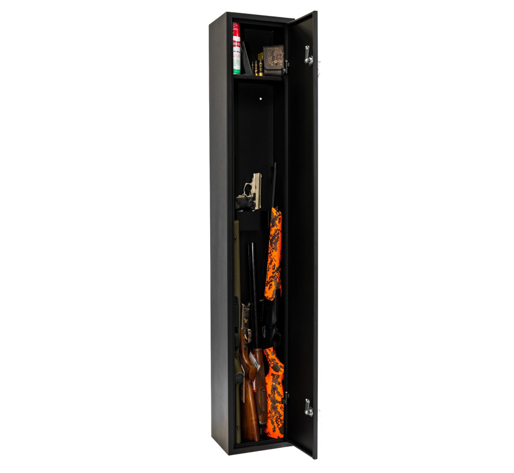 Метална каса за оръжие с място за до 3 броя пушки, отделение за пистолет и боеприпаси и по-голяма височина от предходния модел. Практичен избор за клиенти, които искат по-удобно вътрешно пространство, без да минават към прекалено обемна каса.