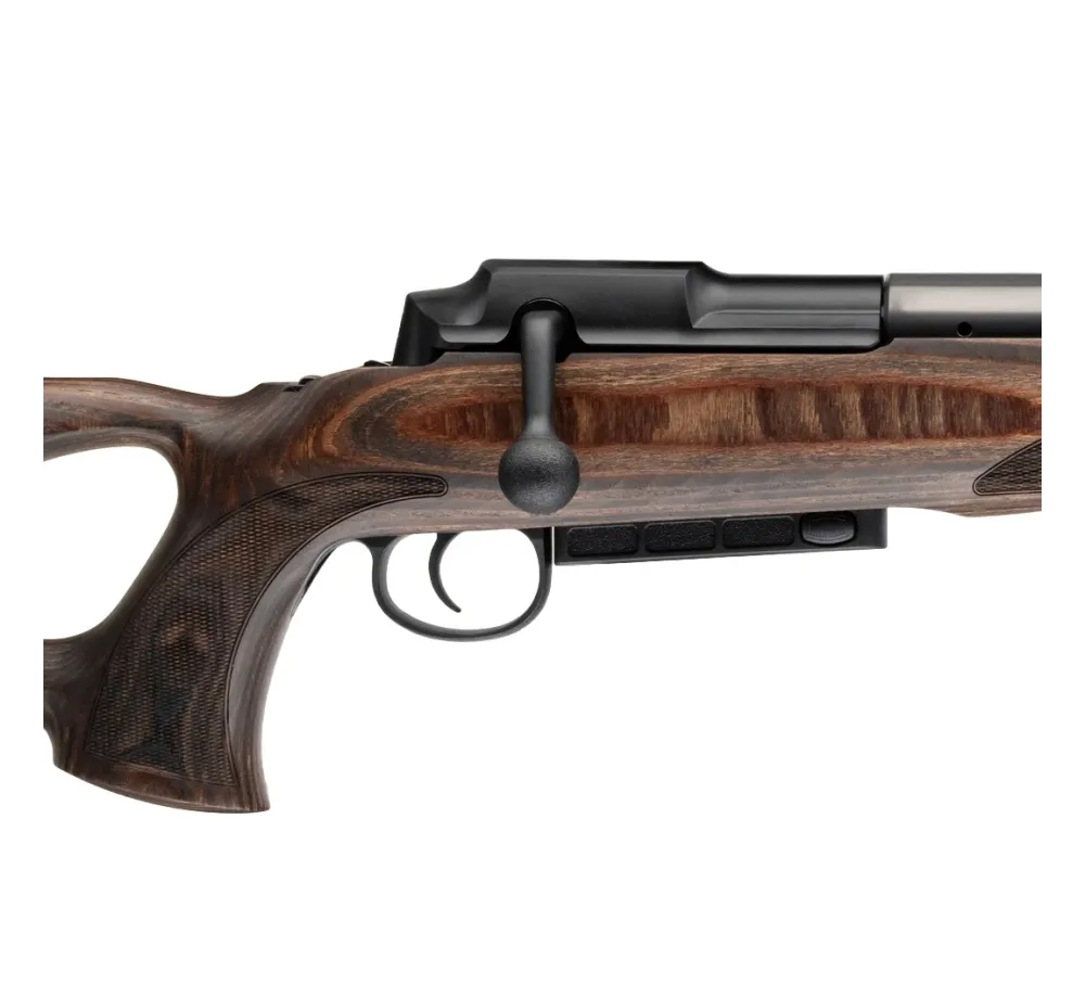 Конфигурацията MAX е особено интересна за ловци, които държат на по-стабилна ръка на приклада и по-добър контрол зад оптиката. Thumbhole прикладът от специално обработена ламинирана букова дървесина заключва ръката по естествен начин и подпомага по-спокойното водене на спусъка. Стръмната пистолетна ръкохватка и регулируемият полимерен набузник дават по-правилна линия на главата, по-добро лягане зад окуляра и по-уверена стрелкова позиция при чакало, от опора или от неравен терен.
